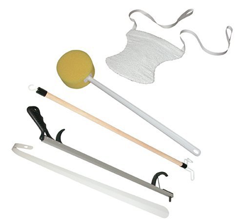 Kit consists of one each: Deluxe Sock Aid, 27"; Dressing Aid Stick, 24"; Raptor Reacher, 19-1/2"; Shoe Horn, 22-1/2"; Scrubbies Long Handled Bath Sponge.Read more Duro-Med Reach Extender Hip Kit