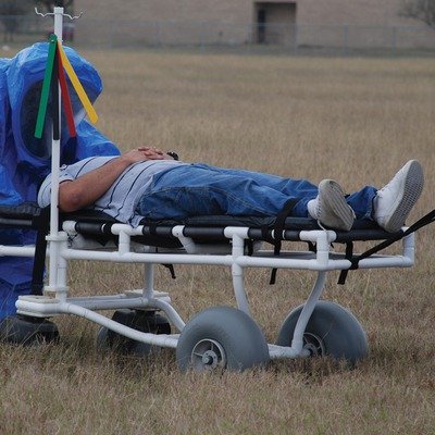 900-SATS Features: -Manufactured of healthcare grade PVC pipe and fittings.-Surge overflow all terrain stretcher with 2'' cushion.-All terrain surge bed.-Contoured frame, no sharp edges, to avoid skin breaks during transfers.-High flotation heavy duty wheels.-Reinforced at all stress related areas.-Non corrosive plastic bearings.-Helps to move injured athletes from the playing field.-Multi position head rest with cushioned laying surface.-Weight Capacity: 450 lbs. Dimensions: -Internal Width: 36''.-External Width: 40''.-Dimensions: 34'' H x 40'' W x 76'' D.Read more Emergency Preparedness Transport Stretcher