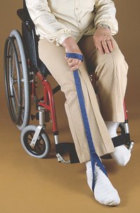 Leg liftEnables people with limited lower extremity strength to lift the leg and foot onto a wheelchair foot rest, bed or into a car. The 35'' (89 cm) long lifter has a loop at each end. The 18'' (46 cm) center section is rigid plastic. One loop is placed around the wrist and the other around the foot or cast. Made of 1'' (2.5 cm) wide high-strength nylon webbing.Product photo may not exactly match the product offered for sale. Please refer to the product description.