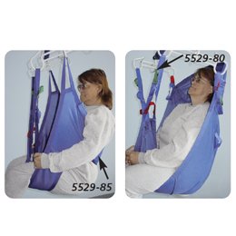 The Combi works with both lifts above and is very versatile and extremely comfortable. It features a built-in head support and padded legs that are divided to allow for easy application and removal. Available in standard solid fabric or mesh for bathing, the Combi is suitable for bed, chair, floor, and tub transfers. The Hygiene Sling is designed for toileting and peri-care and allows for unobstructedaccess to the perineal area. Features padded legs and back as well as a snap-together chest belt for added safety. For use with the Titan X 1000 lb. Lifter (5528-84) and Skyhook with Mounted Electric Lift (5627-24).Read more Combi Sling Length 36 1/2" Width 37" Wt.Capacity 600lbs. - Model 552980