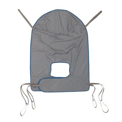 2451105 Size: Extra Large, Color: Blue Features: -Easy Fit Polyester Sling Extra Large.-Material: Solid polyester.-Four strap attachment points.-Solid polyester fabric.-Use with Jasmine or Reliant 450 & 600 lifts.-Weight Capacity: 500 lbs.-Sizes: 29.9" W x 44.5" D. Color/Finish: -Color: Binding: blue / Body: gray.