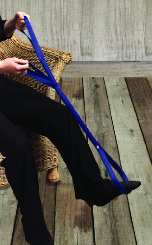 Designed to give control when lifting your leg, enabling you to move in bed, lift your leg onto wheelchair footrests and help you get dressed. Foot goes in the larger, rigid loop to give control when lifting your leg. The upper flexible loops fit around your hand and arm. Very helpful for those experiencing limited mobility in lower extremitites.