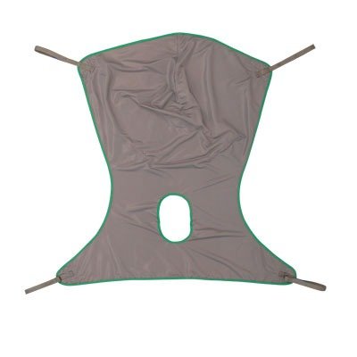 2451094 Size: Large, Color: Green Features: -Comfort Sling with Commode Opening Polyester Extra Large.-Material: Solid polyster.-Four strap attachment points.-Solid polyster fabric.-Use with Jasmine or Reliant 450 & 600 lifts.-Weight Capacity: 500 lbs.-Sizes: 41.4" W x 45.3" D.-Commode opening: 6" W. Color/Finish: -Color: Binding: Blue / Body: gray.